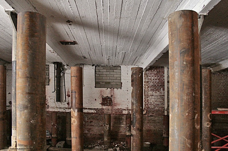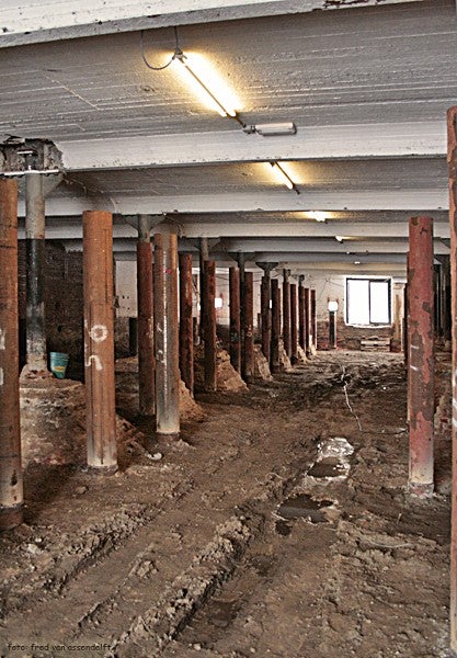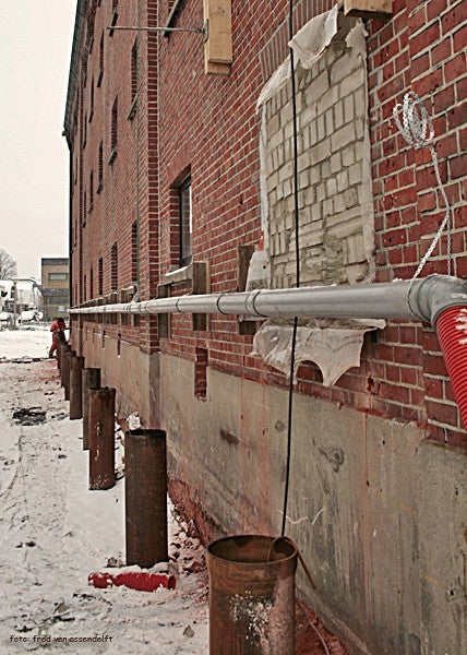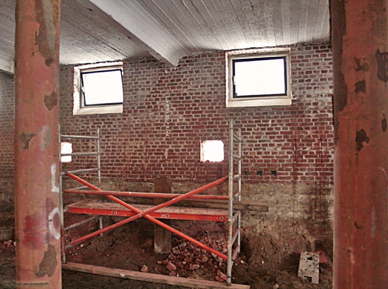 Voor de stevigheid worden de ramen dicht gemetseld.